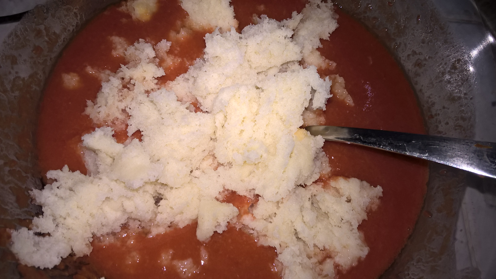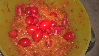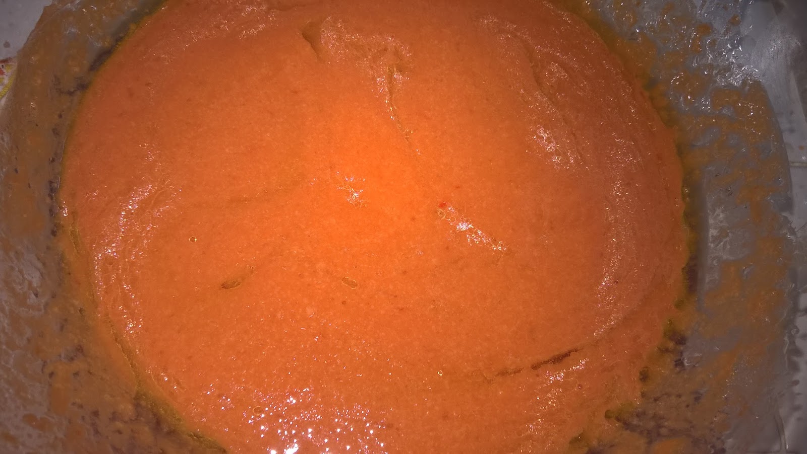 Scegliete se togliere prima la pellicina o frullarli direttamente (per far prima io li frullo con il mixer e poi passo tutto al passaverdure che tratterrà pellicina ed eventuali semini). Frullate insieme ai pomodorini crudi.