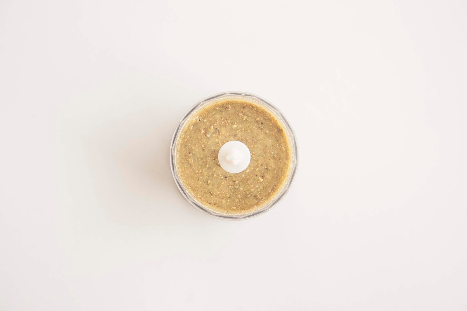 Riaprite il canovaccio e con pazienza prendete i pistacchi visibili senza pellicina, metteteli nel bicchiere di un robot da cucina con un pizzico di sale fino e tritateli fino ad ottenere una granella sottile, aggiungendo man mano l’olio di semi.