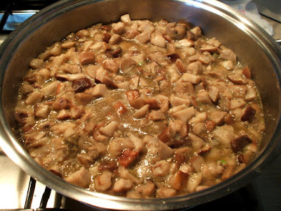 - Per il ripieno: Trifolare i funghi Porcini: guardare Qui il procedimento. Nel caso di Porcini surgelati (purtroppo non sempre li troviamo nei boschi), metterli direttamente nel tegame ancora congelati e seguire la stessa preparazione come per quelli freschi.