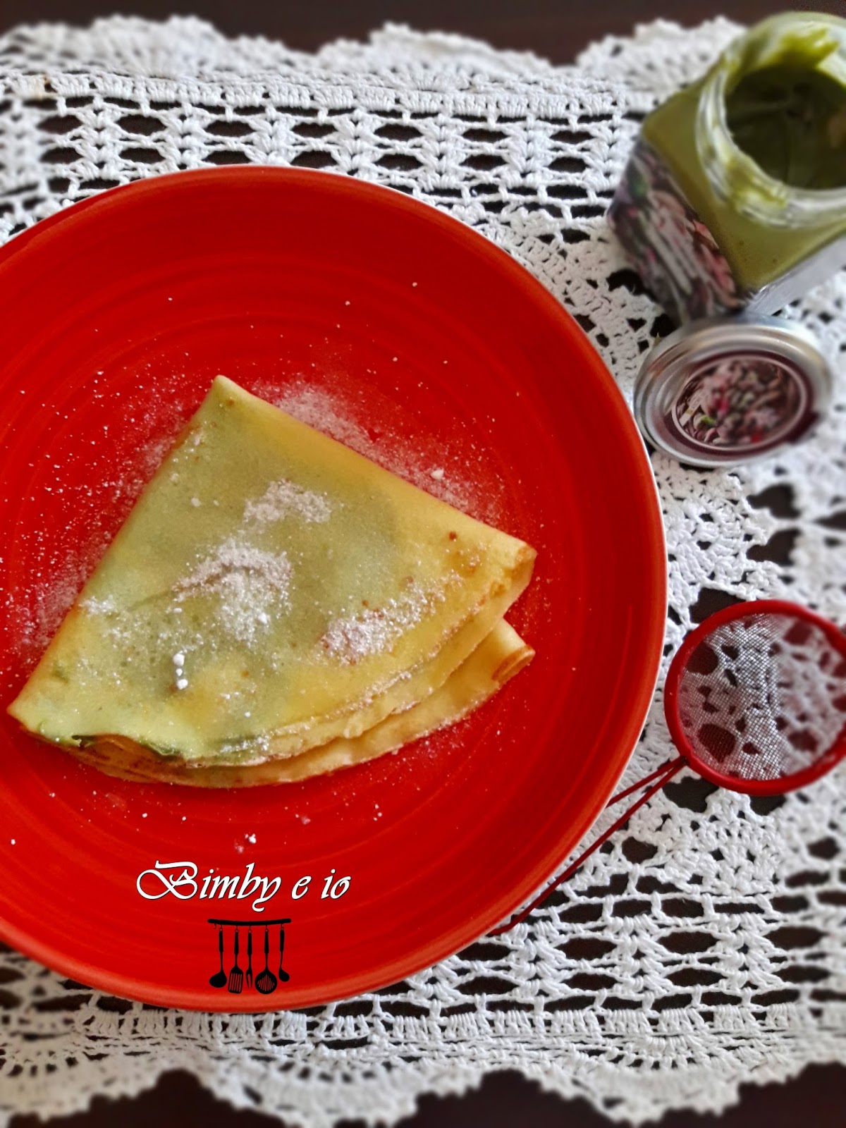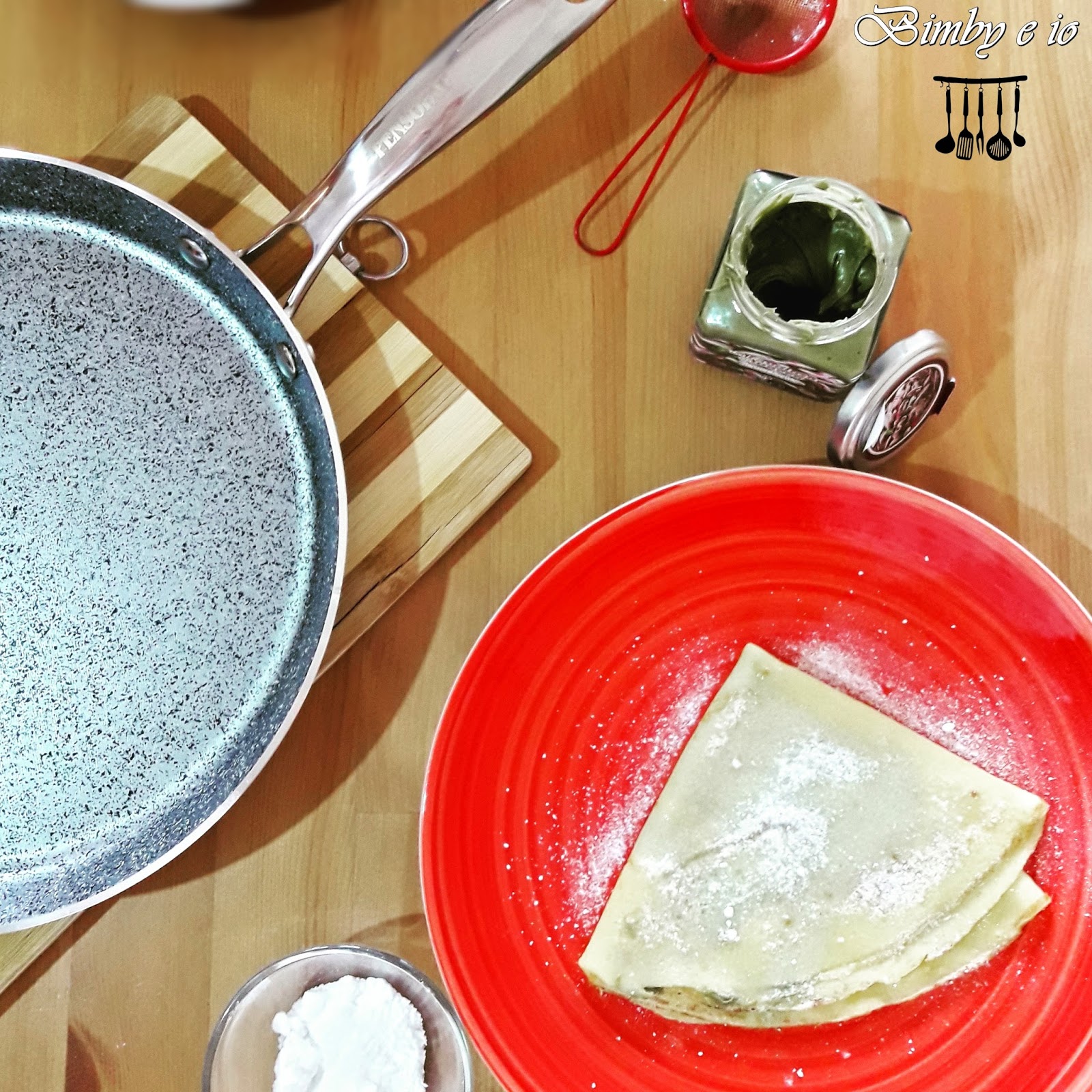 Salve a tutti era da molto che non preparavo le crepes, e stavolta ho voluto deliziare mio marito e mia figlia con queste buonissime crepes farcite alla nutella di pistacchio, non ricordavo quanto fosse veloce e facile prepararle nel bimby e con l’aiuto di una buona padella per crepes ( io ho usato quella della Pensofal ed e’ stato facilissimo realizzarle…mi sono sentita per un attimo essere una dei protagonisti di bake off dato che le utilizzano anche li) .. ma eccovi la ricetta.