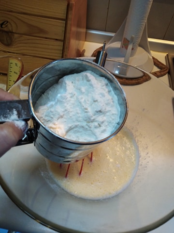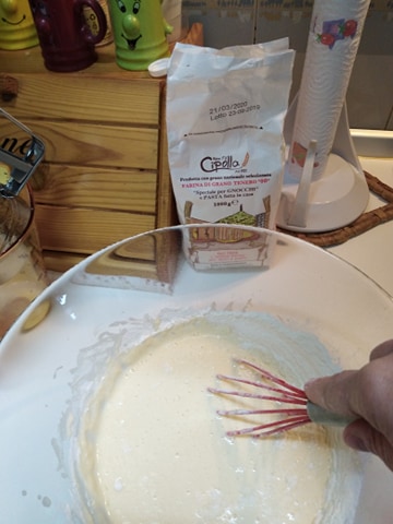 Mescolate la farina setacciata, con le uova ed il latte, fino a creare una pastella liscia ed omogenea.