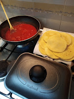 A questo punto iniziamo la cottura del sugo che ci occorre per farcirle e disponiamo la rostiera per la cottura delle crepes.