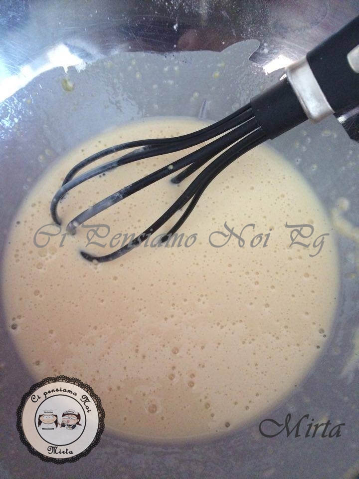 In una ciotola ho messo la farina setacciata, 1 uovo e amalgamo il tutto,aggiungo il latte pian piano fino a ottenere un composto cremoso e senza grumi,aggiungere l’olio e continuare a mescolare, salare. Ho ottenuto questo