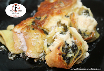 Le crespelle non sono altro che delle crepes arrotolate e tagliate a rondelle, disposte poi in una pirofila come della pasta al forno. E’ un primo piatto davvero versatile e pratico perché potete prepararlo in anticipo e finire di gratinare in forno prima di servire. Questa è la versione semplice con spinaci e caprino ma ripeto la fantasia non ha limiti in questo piatto perché potrebbero essere crespelle al salmone, al prosciutto cotto, al prosciutto crudo, allo speck, alla zucca, qualsiasi gusto. La preparazione fondamentalmente, è sempre la stessa cambia solo il ripieno delle crepes.