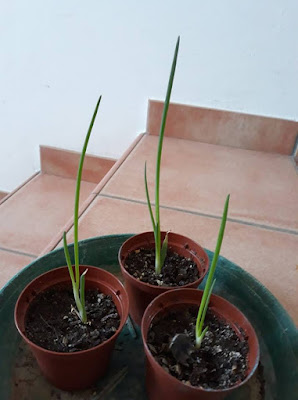 Della cipolla egiziana ligure oltre al bulbo, che ho usato la ricetta con gli spaghetti ,si utilizzano anche le sue foglie, e dal momento che i 3 bulbilli che ho seminato hanno generosamente germogliato ho deciso di utilizzarli.