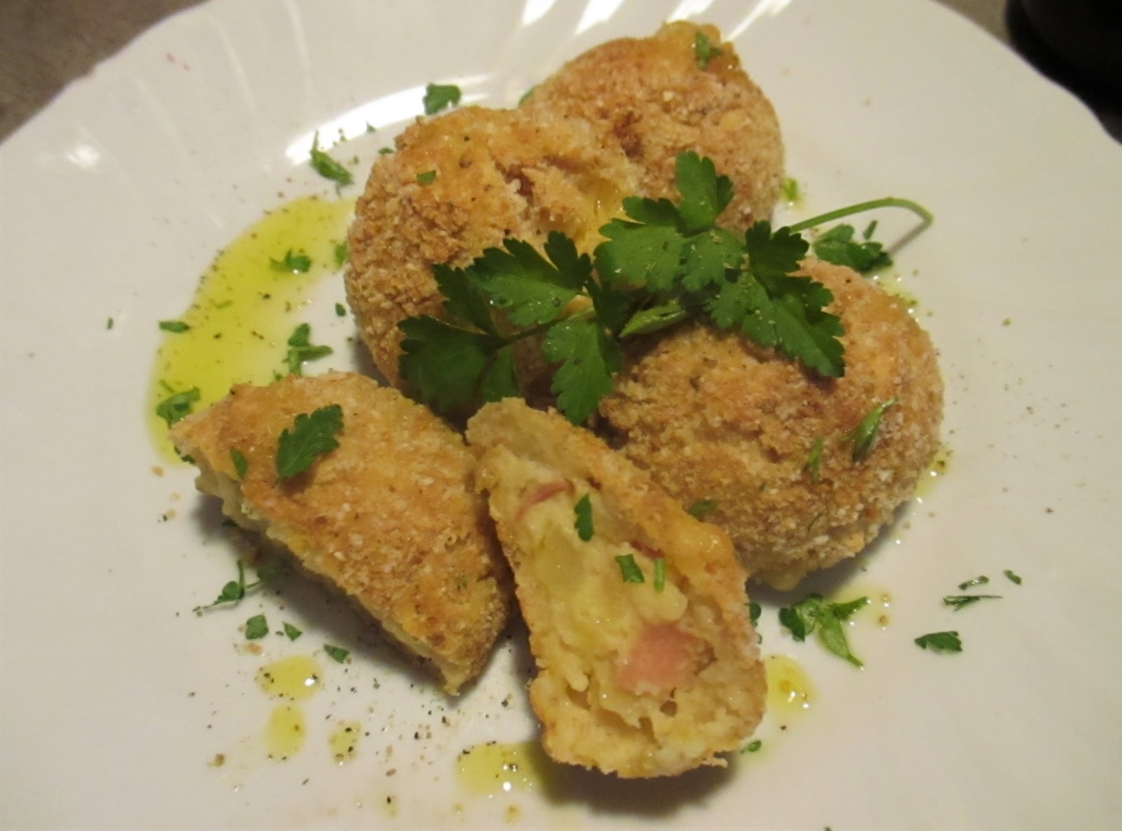 Le buonissime crocchette di patate, normalmente fritte, sono state da me riproposte in una chiave più salutista, al forno. Ho voluto abbondare con la farcia e un paio di palline hanno fatto fuoriuscire un pò di formaggio fuso…ma poco male, o no?