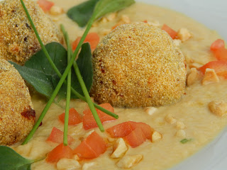 Crocchette di melanzane su vellutata di ceci