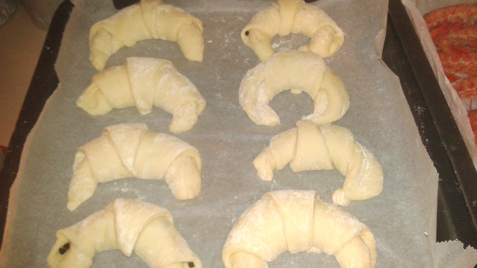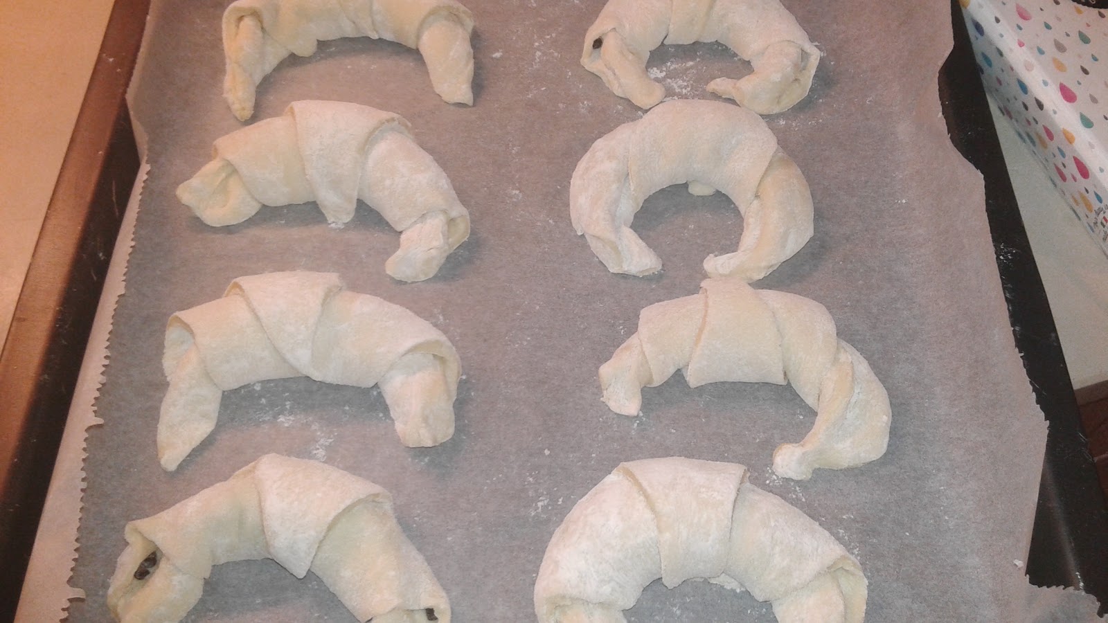 Adagiare gli 8 cornetti su una teglia rivestita di carta forno e far lievitare per un’altra ora.