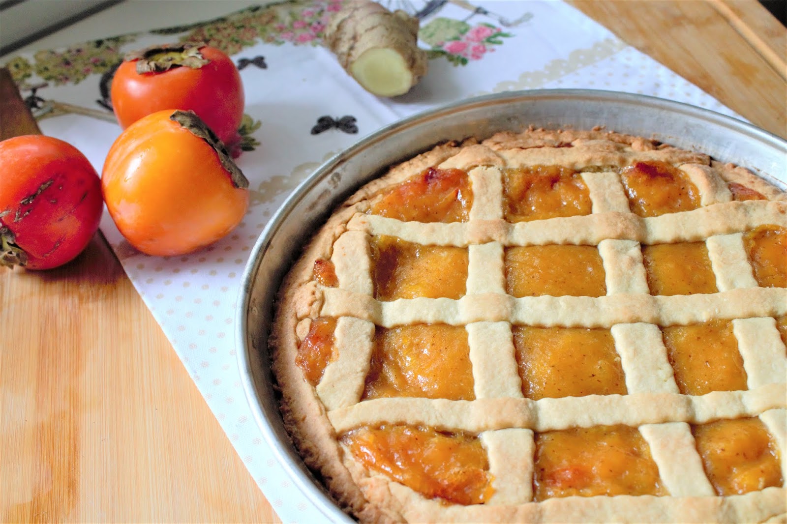 Per preparare la confettura che farcisce questa crostata, è importante scegliere dei cachi ben maturi, altrimenti potrebbero “allappare” la bocca. Potete prepararne anche molta di più e