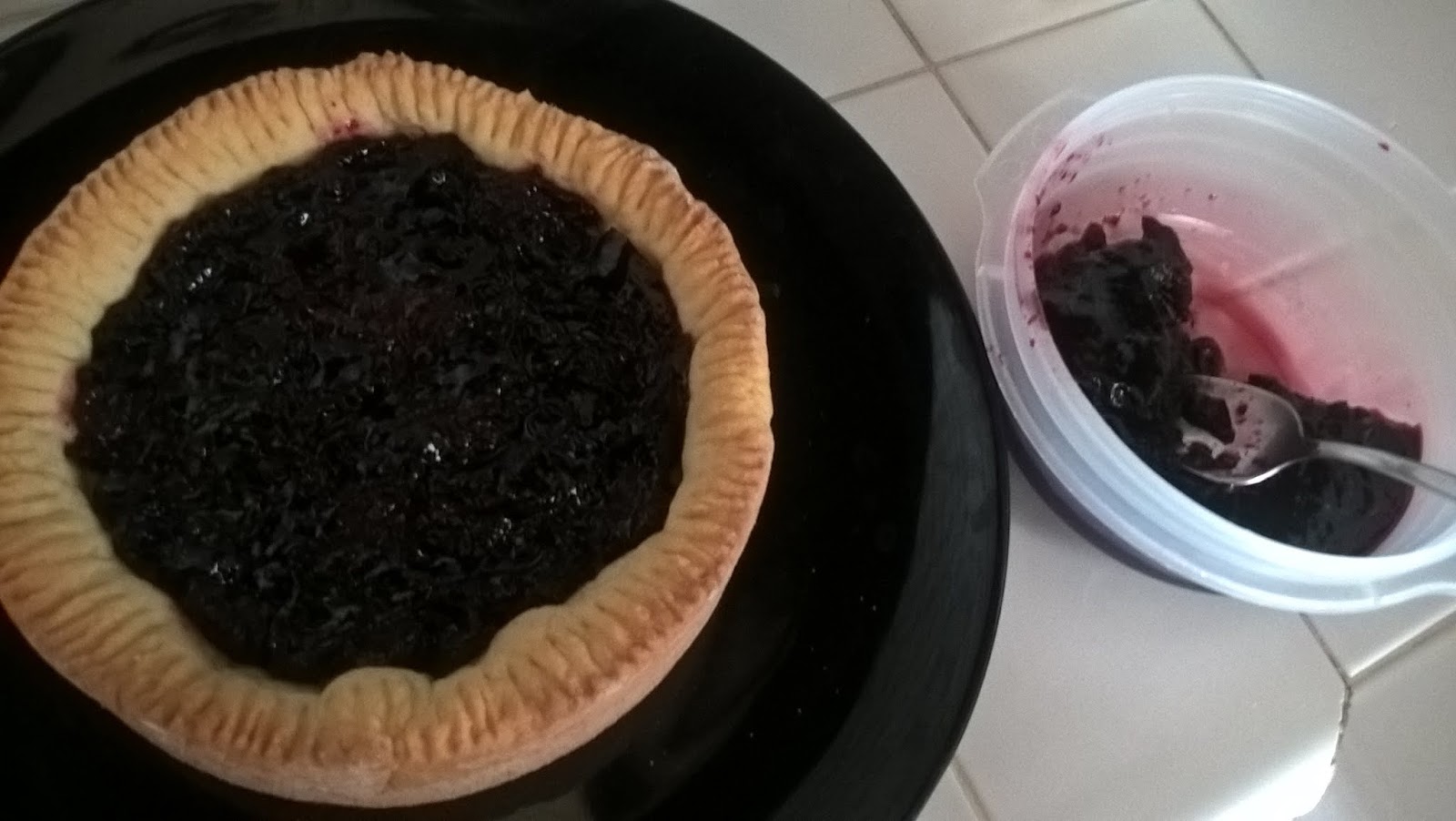Versate sul fondo della crostate la composta di frutti di bosco (a me piace abbondare perchè mi piace troppo, ma se preferite potete metterne appena un velo); ricoprite fino ai bordi con la crema alla panna e livellate.
