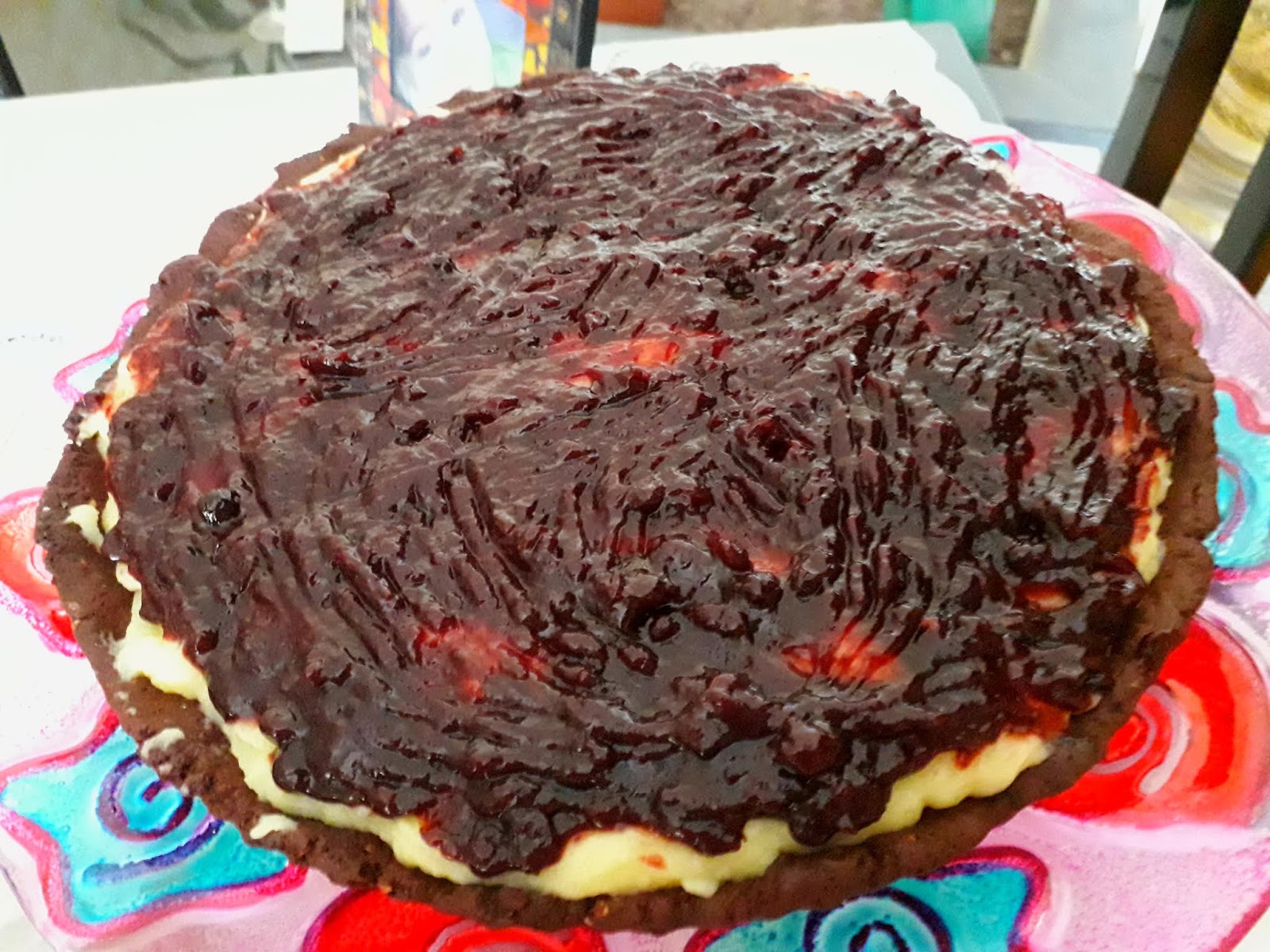 Una volta cotto il guscio,aspettare che raffreddi e riempirlo dapprima con la crema e poi