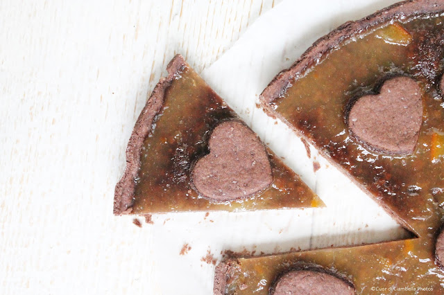 Impastare tutti gli ingredienti per la frolla e una volta ottenuto un panetto, lasciarlo riposare in frigorifero per circa mezz’oretta. Stendere la frolla e trasferirla in una tortiera ricoperta di carta forno (io la stendo direttamente sulla carta poi ritaglio l’eccesso) ricoprire con la marmellata di arancia e cuoricini di o altri decori preparati con la frolla avanzata. Cuocere in forno a 180°C per circa 30-35 minuti.