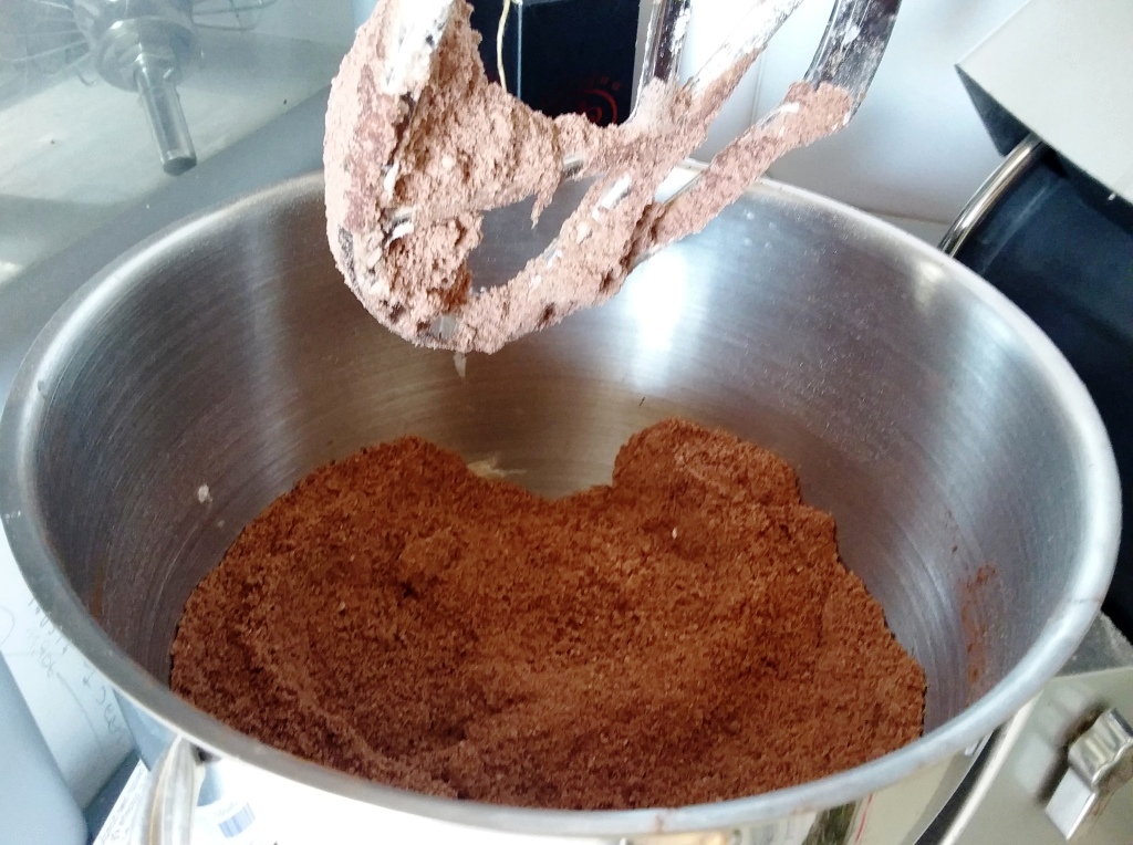 - Conviene cominciare dalla pasta frolla, cosicchè abbia tempo di riposare e raffreddarsi bene. Io ho usato il metodo “sabbiato”: in planetaria con la foglia, fare girare a bassa velocità il burro freddo con la farina, fino ad ottenere uno sfarinato simile alla sabbia bagnata.