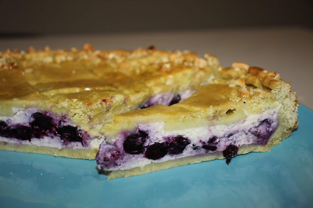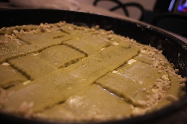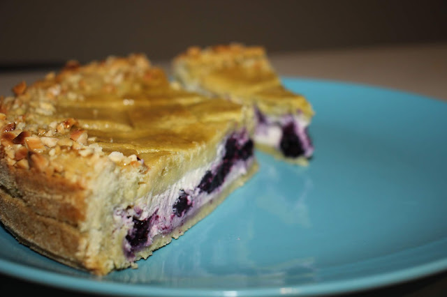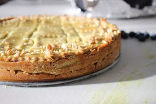Riprendiamo la frolla e stendiamola per ricoprire il fondo di una tortiera, bucherelliamola e versiamo il ripieno. Con la restante frolla prepariamo delle strisce abbastanza larghe e cerchiamo di ricoprire tutta la superficie.