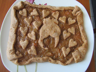 per la frolla: 180 gr farina integrale di farro appena macinata, 25 gr olio extravergine d’oliva, 15 gr zucchero integrale di canna, 30 gr sciroppo d’acero), 75 gr acqua, 1/4 bustina di cremortartaro.