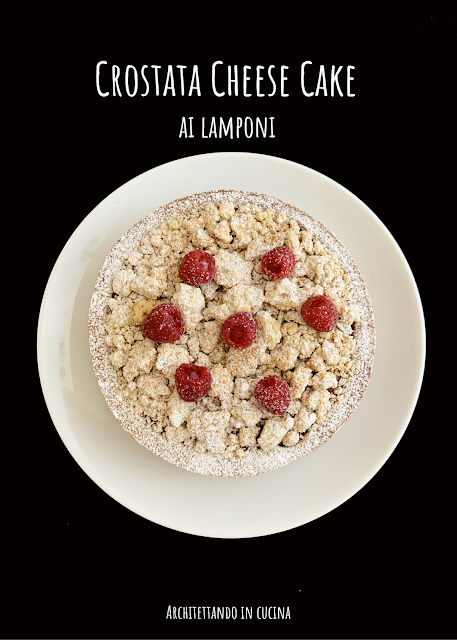 Stare sempre in casa per l’emergenza corona virus, mi fa passare tantissime ore in cucina. Adesso anche insieme a mia figlia che è tornata a casa, perché anche la sua, come tutte le scuole, è chiusa. Però insieme facciamo davvero un sacco di cose buone da mangiare: come questa torta del maestro Stefano Laghi. In realtà lei fa la pasticciera e io faccio le foto, scrivo e anche imparo un sacco di cose. La crostata cheese cake mi ha intrigata subito. Una cheese cake cotta dentro un guscio di frolla montata, gelatina di lamponi, un disco dacquoise, una cascata di streusel e per finire lamponi ripieni di gelatina.
