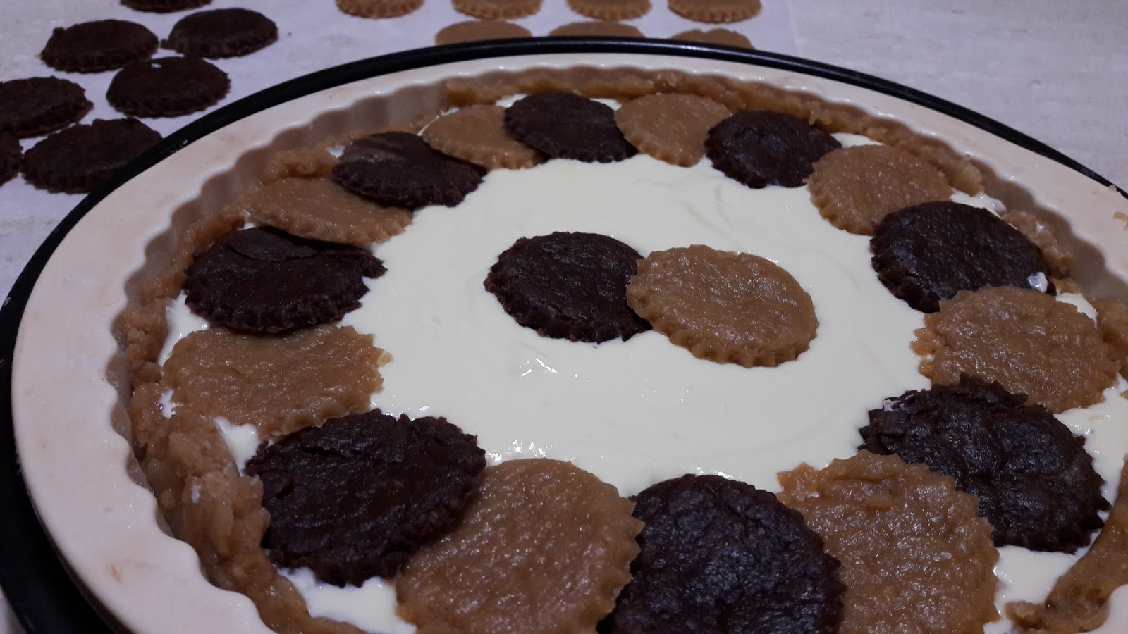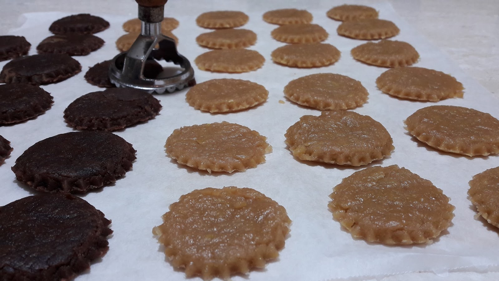Stendete anche la restante frolla al caffè e quella di cioccolato e con un tagliabiscotti