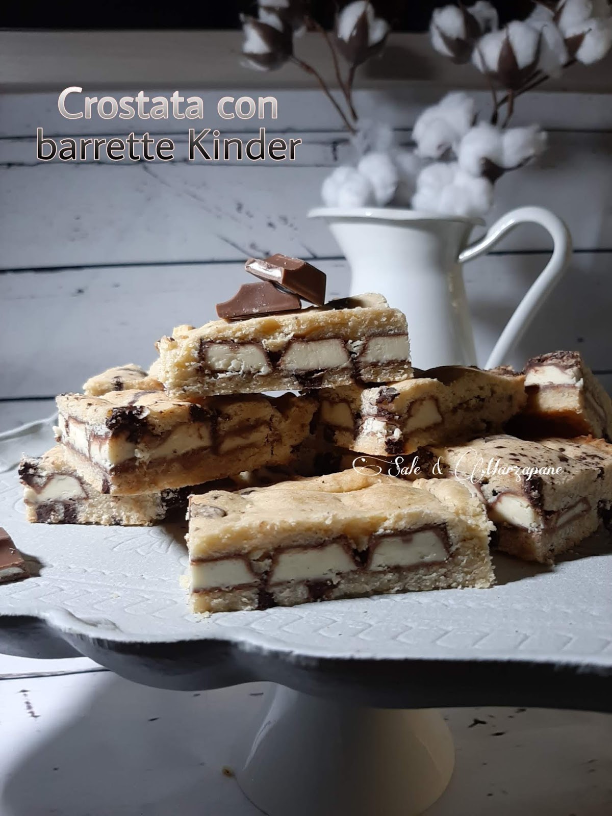 Una deliziosa pasta frolla arricchita da gocce di cioccolato che racchiude un ripieno goloso di barrette kinder cioccolato.