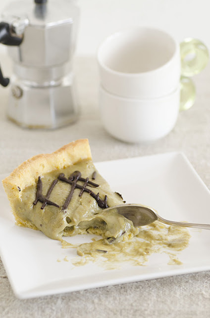 Una crostata con un insolito ripieno: crema di pistacchi.