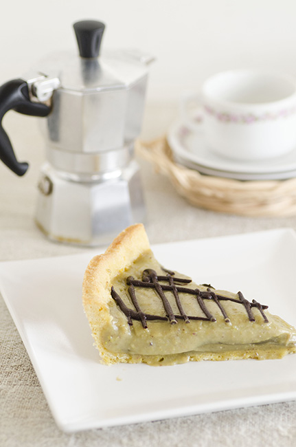 Una crostata con un insolito ripieno: crema di pistacchi.