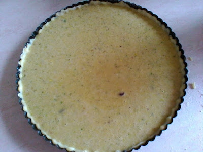 Sabbiate la farina con il burro a pezzetti, unite lo zucchero, il lievito e le uova. Chiudete la pasta nella pellicola e fate riposare in frigo per almeno 30 minuti. In un robot tritate finemente i pistacchi e le mandorle. Con la frusta lavorate burro e zucchero fino ad ottenere un composto chiaro e spumoso, unire a filo le uova ( uno alla volta ), infine aggiungete la farina di pistacchi e mandorle e la farina 00. Fate riposare il composto in frigo per 15 minuti.