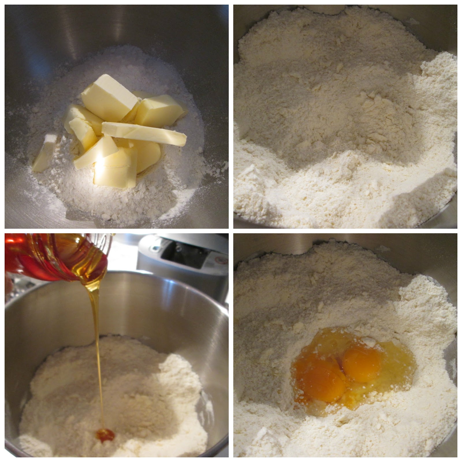 - aggiungete il miele, le uova (1 uovo intero e 1 tuorlo) e amalgamate bene fino ad ottenere un impasto liscio ed omogeneo (ricordatevi di lavorare poco la pasta frolla altrimenti tende ad indurire!)