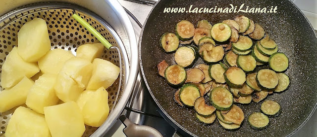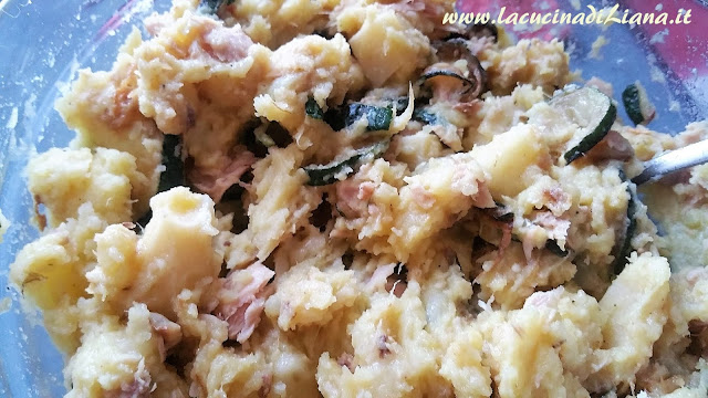 Mescolare le patate schiacciate con le zucchine e il tonno sgocciolato.