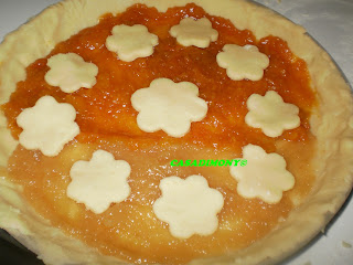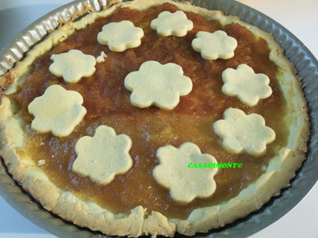 Ho steso la pasta e messa in uno stampo per crostate poi ho aggiunto la marmellata e qualche decorazione con la pasta frolla avanzata