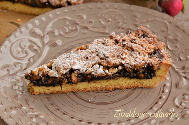 Tritare gli amaretti (100g) e bagnarli con il nocino, deve risultare umida ma non grondante, la quantità di nocino dipende dal tipo di amaretti, non è precisa. cospargere questo composto sulla confettura.