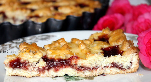 Oggi la propongo con pasta frolla al cocco, farcita con confettura di fragole, il profumo della confettura sposa benissimo con il gusto della frolla al cocco croccante e friabile.