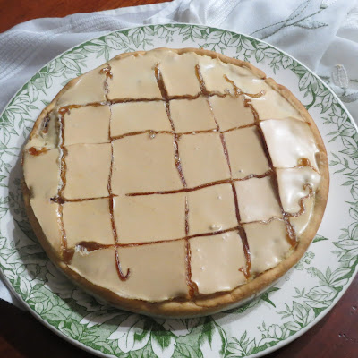Versate la glassa sulla superficie della crostata livellandola uniformemente.