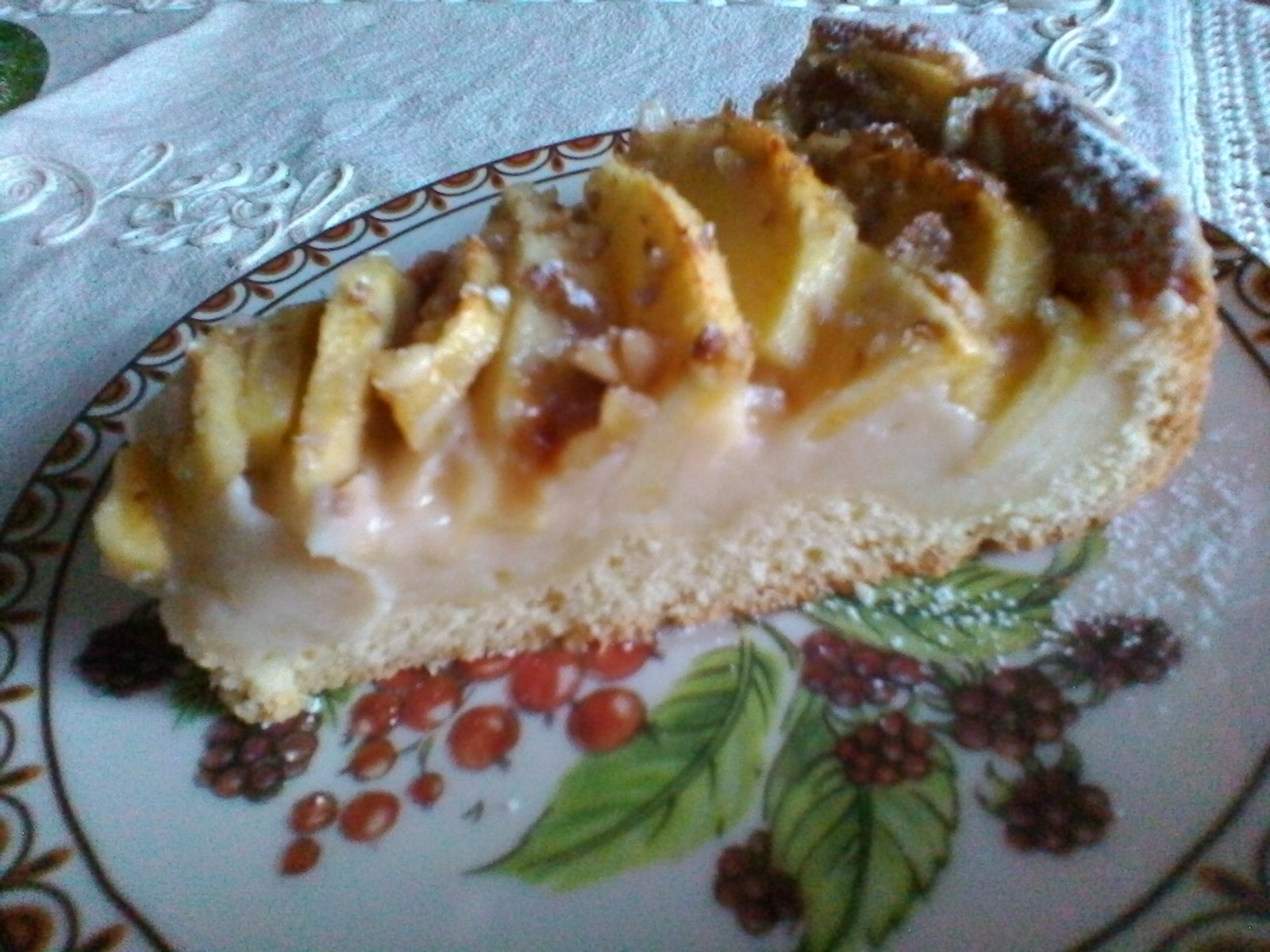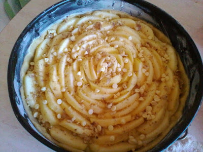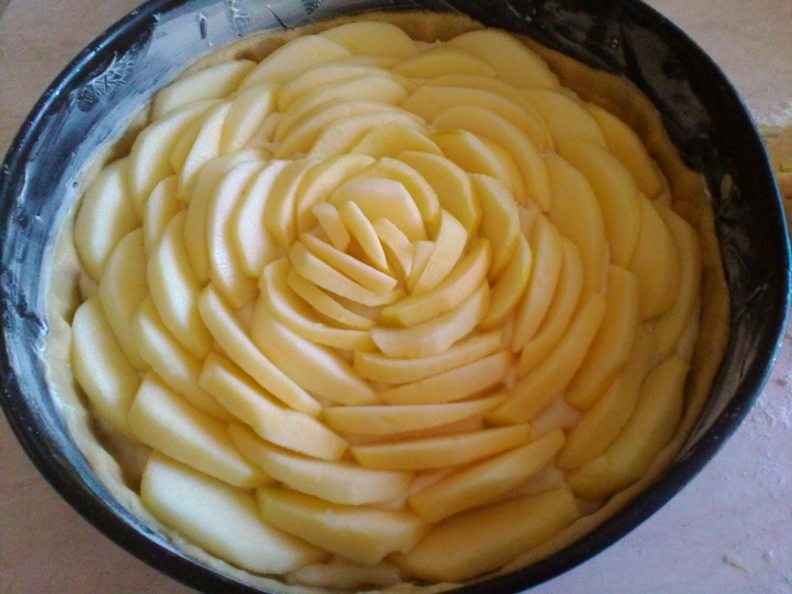 Stendete la pasta frolla e foderate fondo e bordi di una tortiera ( 24 cm ) imburrata e infarinata. Sbriciolatevi i biscotti e versate la crema ormai fredda. Sistemate le mele in forma concentrica.