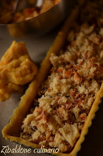 Preparare la frolla con il metodo classico: lavorare il burro temperatura ambiente con lo zucchero, utilizzando un cucchiaio fino a renderlo morbido, aggiungere la scorza, i tuorli , mescolare.