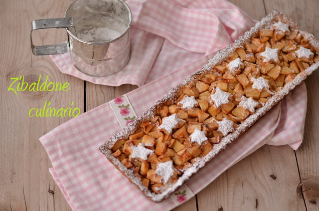 Preparare la farcia: affettare le mele e poi tagliarle a cubetti, spremere il limone e unire lo zucchero di canna, mescolare bene ed aromatizzare con scorza d’arancia e cannella.Lasciare macerare per 1 ora.