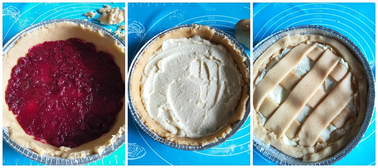 Disporre ora sulla crostata le classiche strisce ottenute dal restante impasto