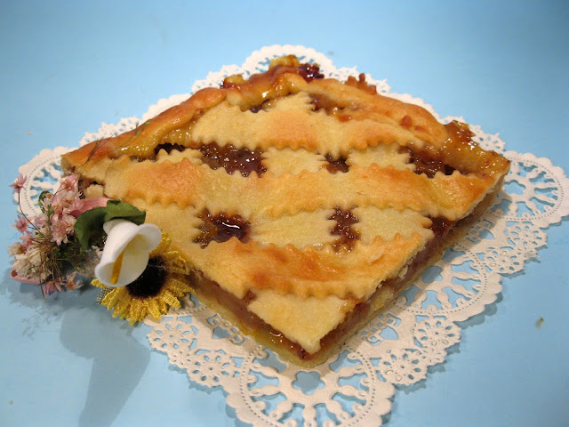 Con gli avanzi di pasta frolla ritagliare delle strisce e formare la grata e pennellare con poco latte..