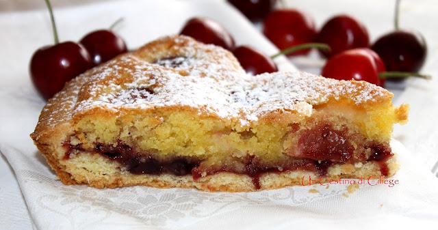 E’ una deliziosa crostata con crema frangipane, che si abbina perfettamente con questo frutto di stagione molto apprezzato e goloso. Un leggero strato di confettura di ciliegie sul fondo la rende ancora più golosa. Semplice e veloce da preparare, è un dolce per ogni occasione!