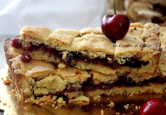 Una croccante pasta frolla alle mandorle racchiude delle golose ciliegie e mandorle tostate.
