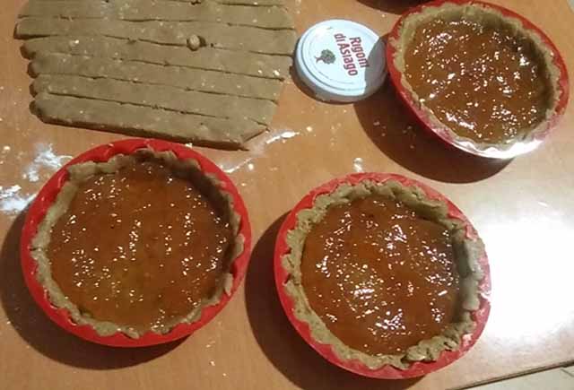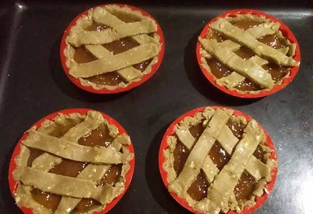 e guarnire le crostatine con le classiche strisce di pasta incrociate.