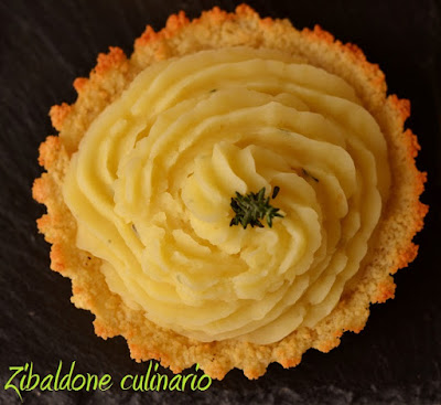 Lo spunto l’ho trovato su Sale &Pepe di tanti anni fa e con opportune modifiche, è diventato una variante al classico guscio di frolla per crostate, crostatine (come in questo caso) o tartellette.