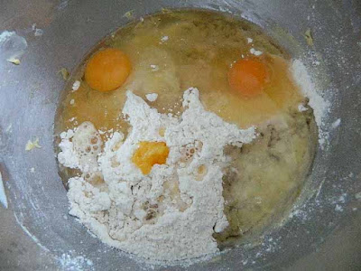 Sulla spianatoia o nella ciotola della planearia mettere la farina setacciata, lo zucchero, il lievito, l’olio e l’uovo,