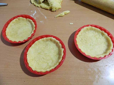 e ricoprire gli stampini per crostatine con la sfoglia facendo aderire bene la base e i bordi,