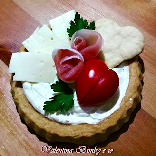 Decorare la superficie con i pezzetti di asiago, con un pomodorino tagliato a metà e poi unito a forma di cuore, come in foto sotto;