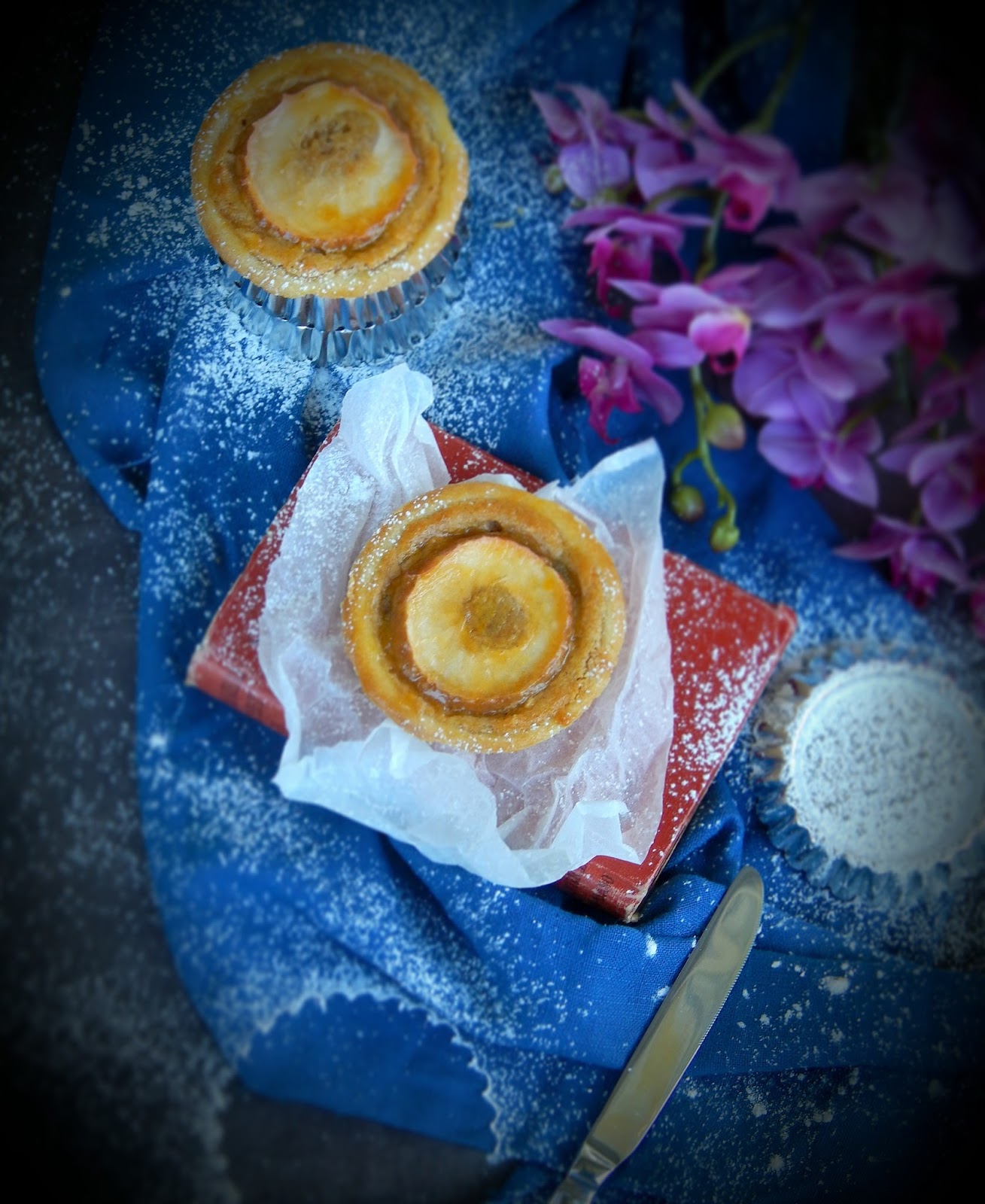 Riempire fino a metà con il composto alle mandorle e disporre sopra una rondella di mela spessa 1,5 cm.
