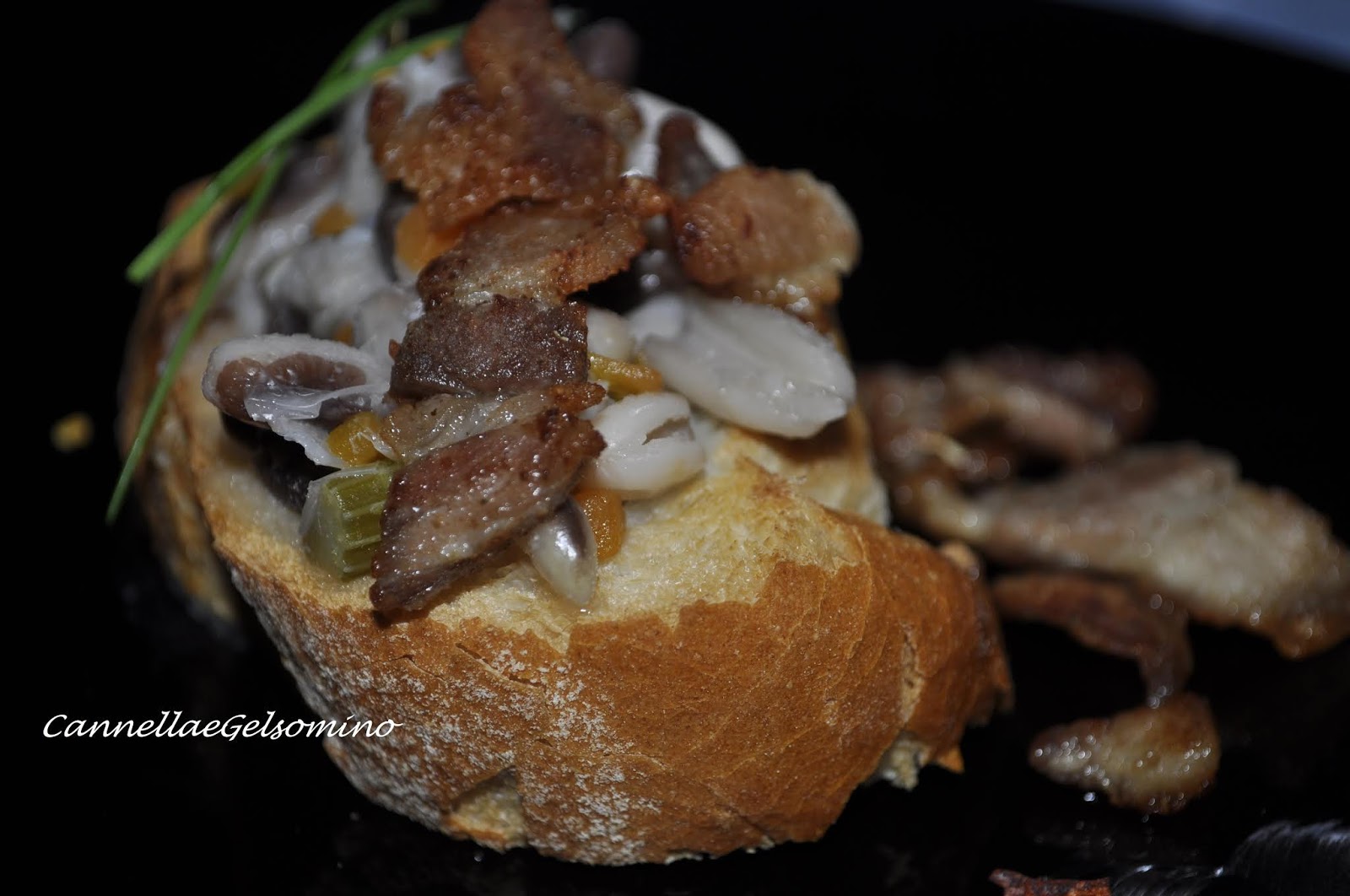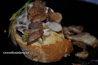 Non è la solita bruschetta, nel senso che il condimento è “importante” e sostanzioso; vale la pena perdere un po’ di tempo per la preparazione perchè il risultato vi ripagherà della fatica.