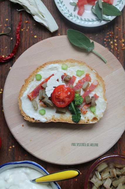 Farcite con lo SQUACQUERONE, le fette di SALAME SPIANATA ed il CARDO saltato in padella tagliato sottile.