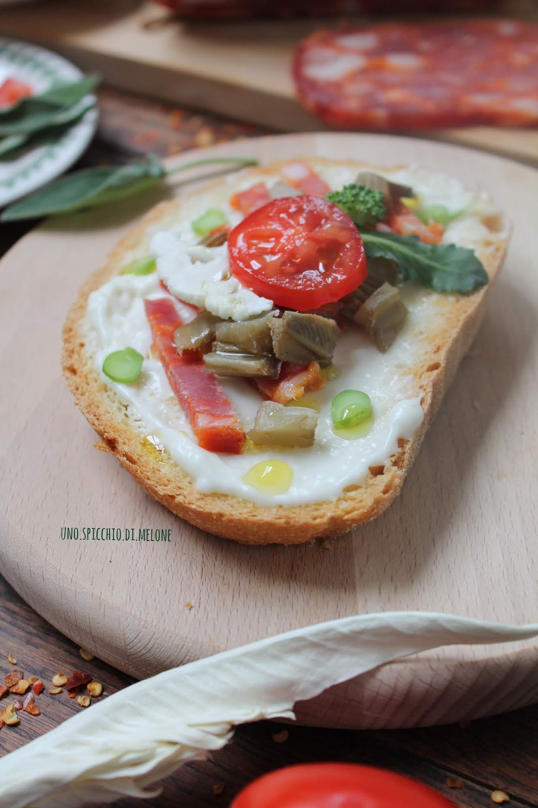 Ecco che il vostro crostone è pronto per essere servito e gustato…il piccante del SALAME SPIANATA andrà ad amalgamarsi con la dolcezza del CARDO e la morbidezza dello SQUCQUERONE…sentirete che bontà!