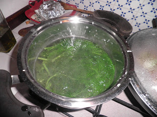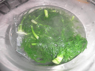 Cosa ho fatto? Ho tagliato le barbe più tenere e le ho leggermente sbollentate per mantenere vivo il colore; le ho tuffate in acqua ghiacciata.