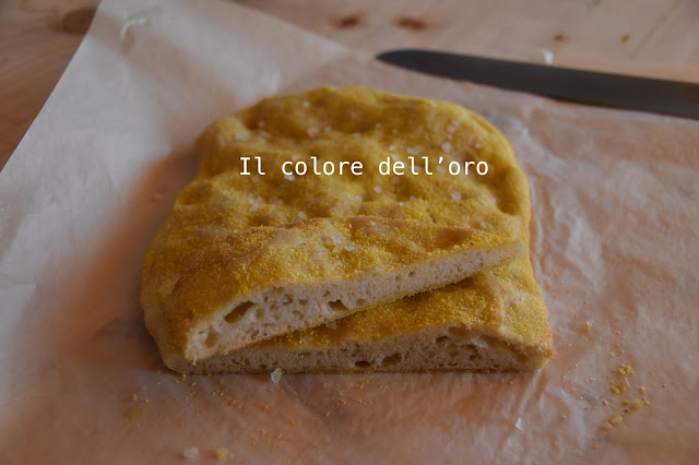 Cospargiamo di olio evo, spolveriamo con altra farina di mais e aggiungiamo un altro filo di olio evo.