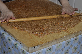 Non è Natale se non c’è lei , la cubaita o ghigghiulena come la chiamano i modicani. In ogni casa è un rito: dalla mondatura dei semi di sesamo alla lavorazione vera e propria che richiede, a casa mia, il contributo maschile, in quanto necessitano buoni muscoli per rimestare il tutto. I semi di sesamo vanno prima ripuliti dei corpi estranei, quindi lavati con l’apposito setaccio, infine messi ad asciugare al sole.